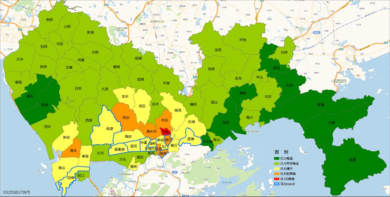 晚高峰十大交通運行惡化街道:翠竹、筍崗、福保、蓮花、沙頭、民治、華強北、福田、蛇口、招商。