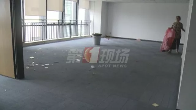 空蕩蕩又安靜的空間里只有一位女士在打掃衛(wèi)生,她說自己一直給這家公司兼職做清潔,28日晚接到該公司領導電話,讓她29日早上來公司打掃一下,可她的工資目前還在被拖欠之中。