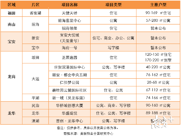 深圳市8月份入市項(xiàng)目預(yù)測(cè)列表