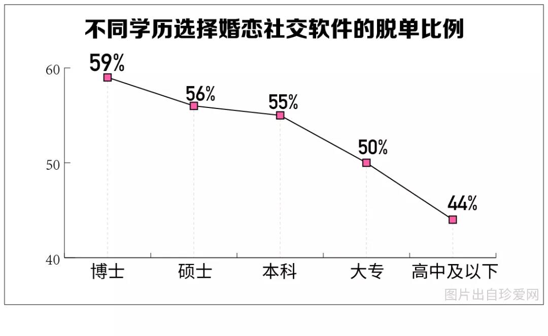 隨著社會(huì)的發(fā)展,單身90后脫單的方式也變得更新穎多樣。調(diào)查顯示,親戚朋友介紹與婚戀社交軟件是當(dāng)下90后單身青年脫單的主流方式,其次為工作環(huán)境接觸、相親活動(dòng)和泛社交活動(dòng)。就性別差異來看,超半數(shù)(54.27%)男性愿意使用婚戀社交軟件,略高于女性(49.42%),而女性更多的是選擇親戚朋友的介紹(62.54%)。從學(xué)歷背景看,學(xué)歷越高的青年群體更愿意嘗試使用婚戀社交軟件等新興方式脫單。
