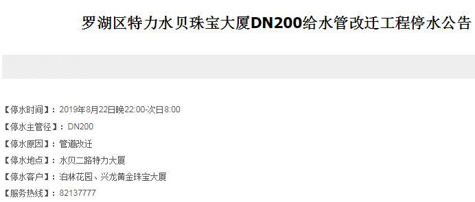 停水時間:2019年8月22日晚22:00-次日8:00