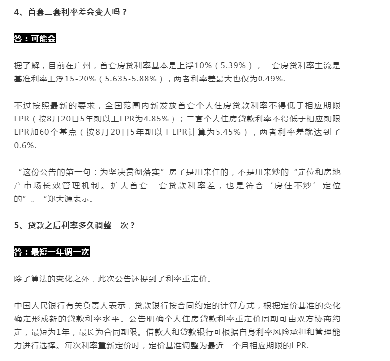 二套個人住房貸款利率不得低于相應期限LPR加60個基點(按8月20日5年期以上LPR計算為5.45%)。
