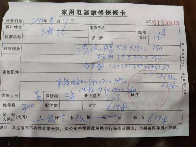 藍先生的妹妹在58同城小助手,找到了深圳市易臣國際貨運代理有限公司,并預(yù)約了上門清洗空調(diào)的服務(wù)。當師傅上門以后,除了清洗外,還說空調(diào)存在多個問題,如需要加雪種(學(xué)名“氟利昂”)、線路老化、空調(diào)漏水等,6臺空調(diào)整體清洗加修理下來,藍小姐當天共花費6618元。