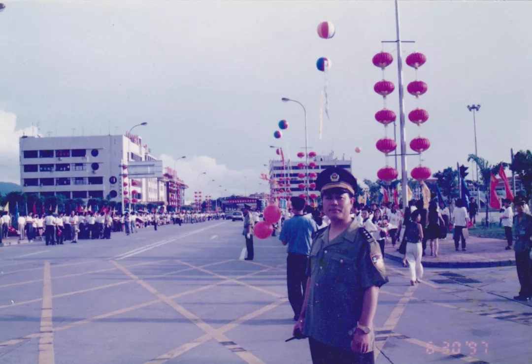 讓我們把時(shí)鐘撥回到1985年,那一年5月,皇崗口岸正式動(dòng)工興建,飛檐斗拱,美輪美奐,陽(yáng)光下,黃色的琉璃瓦屋頂格外搶眼,白墻紅柱,一座極具中國(guó)風(fēng)的口岸一點(diǎn)點(diǎn)清晰起來。與之一并推進(jìn)籌建的便是皇崗口岸派出所的前身“深圳市公安局皇崗口岸分局”。據(jù)當(dāng)年皇崗口岸分局時(shí)任政委賴魯濱回憶,1986年,分局籌建組10余人只能擠在口岸附近的一個(gè)鐵皮茅棚內(nèi)開展各項(xiàng)籌備工作?!翱紤]到成立之初,日常的主要工作是維持通關(guān)貨柜車的交通秩序,所以組建時(shí)抽調(diào)的警員中,大部分來自交警隊(duì)伍?!辟圁敒I說。通過緊張有序地籌備,皇崗口岸分局于1987年正式批復(fù)予以成立。