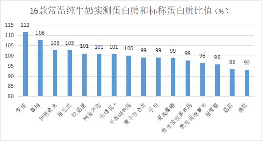 本次16款常溫純牛奶蛋白質(zhì)實際檢出值和標(biāo)稱值的比值在93%~112%,符合要求范圍。表現(xiàn)最好的是安佳、燕塘、伊利金典和紐仕蘭。德運和德亞表現(xiàn)欠佳。