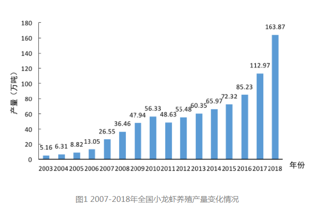 隨著生活水平的提高,人們對“食”提出了更高要求,色香味俱全的美食往往也更讓人難以抗拒?;疱仧拘↓埼r作為當(dāng)代青年人的“最愛”,已獨得恩寵許多年,尤其是小龍蝦。每年夏季,是吃小龍蝦的旺季。據(jù)部分媒體不完全統(tǒng)計,光南京一個城市每年的龍蝦消費量都超萬噸,而北上廣深蓉5個城市,小龍蝦門店數(shù)均超3000家。此外,據(jù)2019年中國小龍蝦產(chǎn)業(yè)發(fā)展報告顯示,小龍蝦產(chǎn)業(yè)總產(chǎn)值達(dá)3690億元,占據(jù)了第三產(chǎn)業(yè)產(chǎn)值的主導(dǎo)地位。這種巨大的消費力帶動了小龍蝦養(yǎng)殖業(yè)的發(fā)展,到2018年,全國小龍蝦養(yǎng)殖產(chǎn)量已超163萬噸。