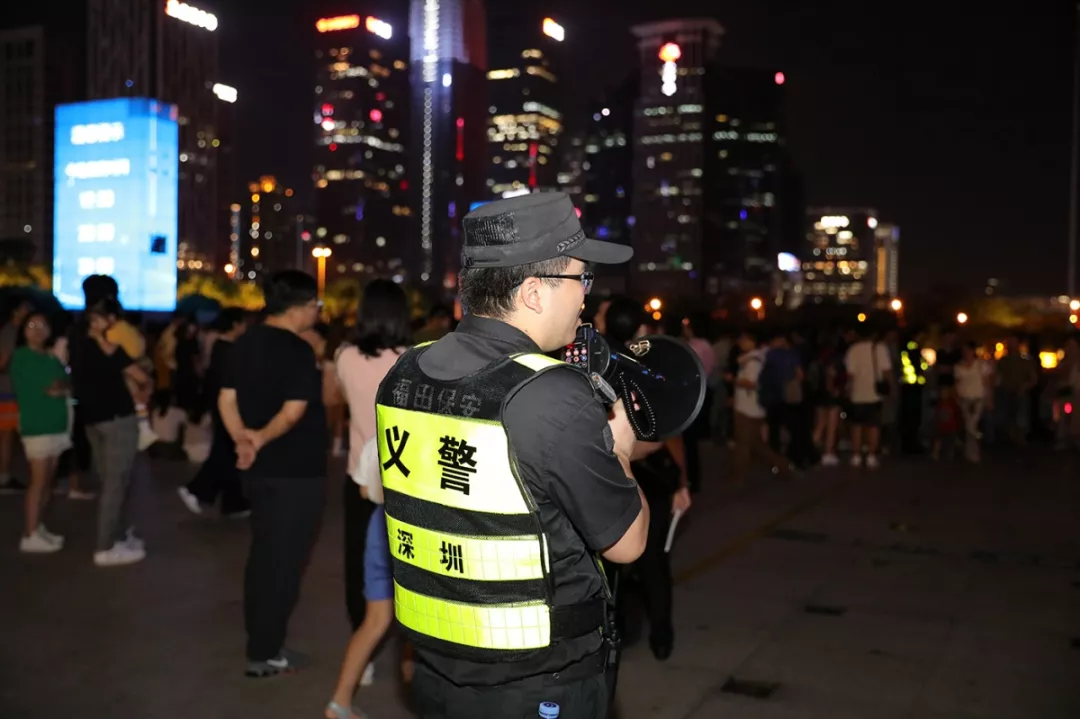 此外,福田公安分局根據(jù)市民中心和蓮花山頂廣場(chǎng)的每日人流負(fù)荷情況實(shí)時(shí)調(diào)整,及時(shí)協(xié)調(diào)城管調(diào)控?zé)艄庑悴コ鰰r(shí)間并加演,避免人流停滯,緩解疏導(dǎo)壓力。值得一提的是,為了方便市民夜間行走,觀賞區(qū)特地“開辟”了幾條新的應(yīng)急道路,并在所有“黑暗死角”都加裝了應(yīng)急燈。福田公安分局指揮處處長張保軍表示:“在安保警力多次實(shí)地巡查后,及時(shí)發(fā)現(xiàn)問題并整改、疏通光線不足及堵塞人群的道路,使市民們?cè)谟^看完燈光秀后能夠更加安全、快捷地離開?!背艘酝?,在人流密集的燈光秀現(xiàn)場(chǎng),孩童走失、物品遺失的情況也有發(fā)生,安保人員不斷地通過廣播尋人、尋物,進(jìn)行實(shí)名登記,盡心盡力地為市民、游客解決切身難題。