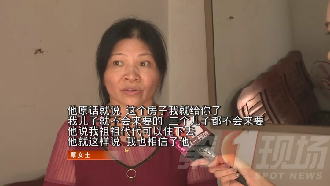 覃女士說,在照顧黃先生期間,相處的挺愉快,只是好景不長(zhǎng),黃先生在一次意外中摔倒,并于2002年離世。覃女士告訴記者,臨終前黃先生為了報(bào)答她的照顧,曾承諾將自己住的房子無(wú)條件給覃女士居住。