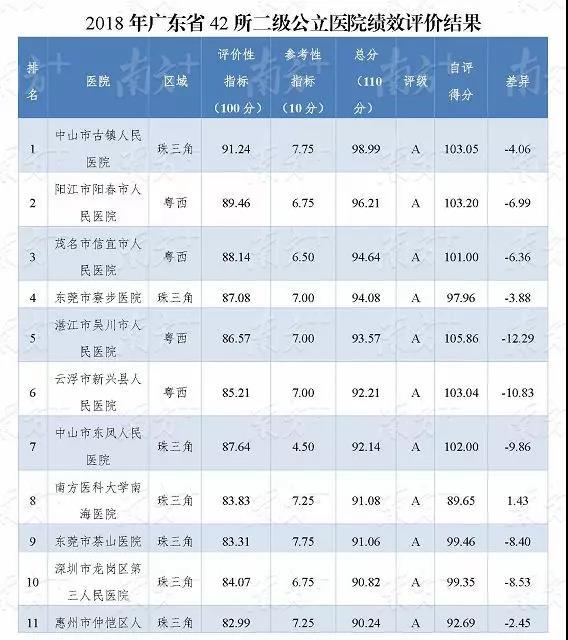 2018年廣東省42所二級公立醫(yī)院績效評價中包含深圳2家醫(yī)院,其中