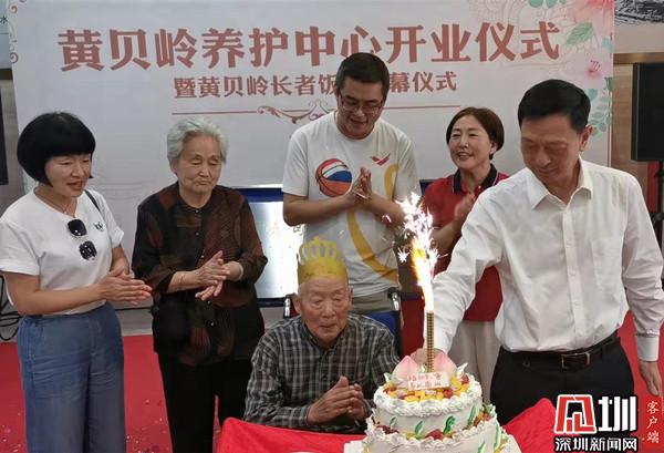 當(dāng)天下午,在歡樂喜慶的背景音樂中,羅湖區(qū)政協(xié)主席吳裕中、副主席羅安娜,羅湖區(qū)衛(wèi)生健康局局長鄭理光,羅湖區(qū)民政局局長楊文秀,羅湖醫(yī)院集團(tuán)院長孫喜琢,黃貝嶺靖軒股份公司董事長張偉明一起為黃貝嶺養(yǎng)護(hù)中心及黃貝嶺長者飯?zhí)媒遗啤V?,有?3年黨齡的86歲老人惠發(fā)安坐著輪椅,和62年黨齡的83歲老伴張歧蘭一起,伴著推來的生日蛋糕來到揭牌現(xiàn)場,當(dāng)天正是惠發(fā)安86歲大壽生日,參加開業(yè)儀式的羅湖區(qū)政協(xié)委員、羅湖區(qū)衛(wèi)健局負(fù)責(zé)人等和現(xiàn)場人員一起,一邊鼓掌一邊唱起生日歌,為老人溫馨慶生。