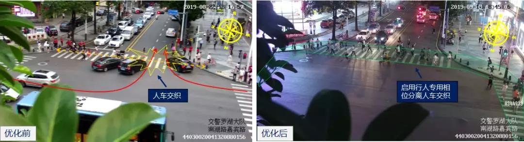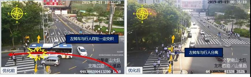 對此,深圳交警于9月11日對該路口進(jìn)行再優(yōu)化,調(diào)整東西向機(jī)動車放行方案,分離北面行人與西面左轉(zhuǎn)車,從而保障北面行人過街安全。優(yōu)化后,該路口東西行行人與同向左轉(zhuǎn)車分離,行人過街安全更有保障。
