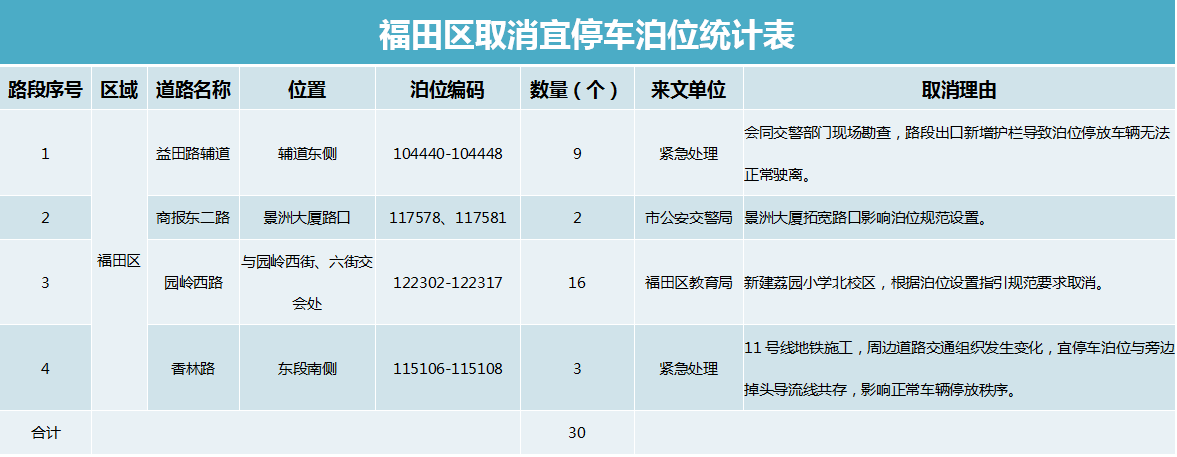 據(jù)悉,338個宜停車泊位中包括福田區(qū)4條道路共30個泊位,南山區(qū)5條道路共58個泊位,鹽田區(qū)1條道路共9個泊位,寶安區(qū)1條道路共24個泊位,龍崗區(qū)5條道路共184個泊位,龍華區(qū)1條道路共33個泊位。