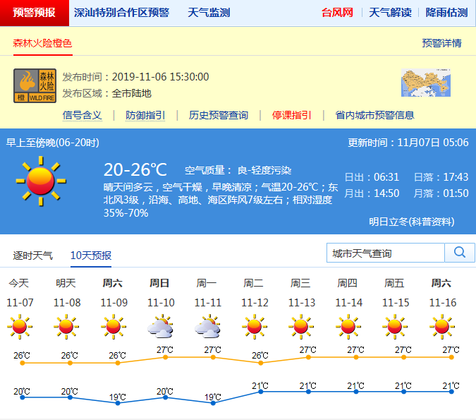 見(jiàn)圳客戶(hù)端·深圳新聞網(wǎng)2019年11月7日訊 空氣非常干燥,沿海及高地陣風(fēng)7級(jí)左右,氣溫20-26℃。未來(lái)幾天干燥加劇,請(qǐng)注意用火安全,戶(hù)外運(yùn)動(dòng)需及時(shí)補(bǔ)充水分。