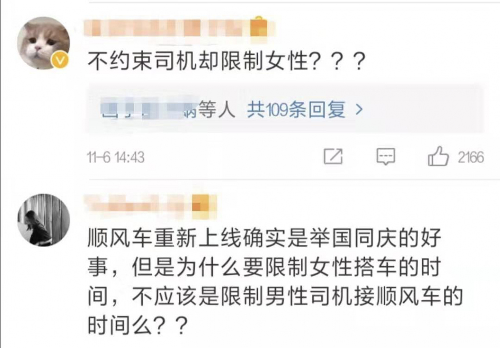 相較于其他安全措施,20:00后不接女性訂單的規(guī)定,引發(fā)的爭(zhēng)議尤其大。很多人覺(jué)得,這是對(duì)女性的冒犯和隱性歧視。因?yàn)橛星败?chē)之鑒、怕出事后要擔(dān)責(zé),干脆讓女性無(wú)法方便地打車(chē),屬于典型的因噎廢食。