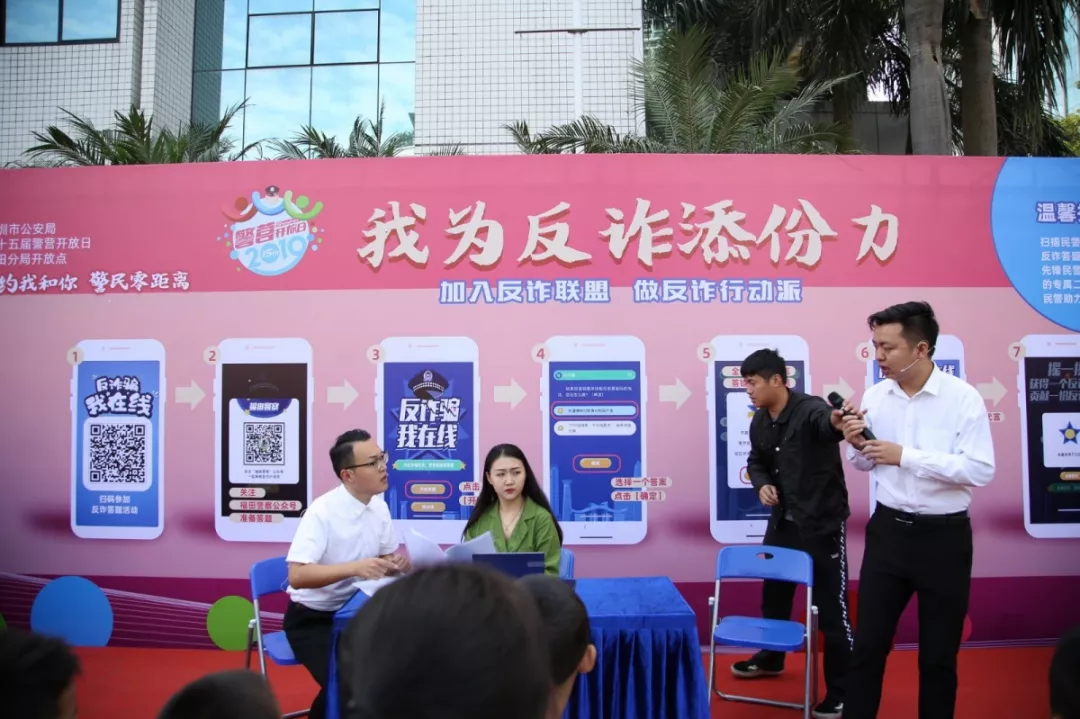 警民同心,全民防騙;人人反詐,共建平安!福田警察推出“反詐騙我在線”線上微程序,向廣大市民倡議誠(chéng)邀:加入反詐聯(lián)盟,一起為反詐騙代言,做反詐騙行動(dòng)派!相聲、小品等文藝表演的形式也搬上了反詐騙宣傳的舞臺(tái),以寓教于樂的方式提高了市民的防范意識(shí)。