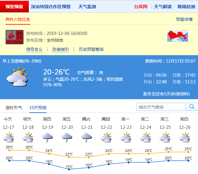 見圳客戶端·深圳新聞網(wǎng)2019年12月17日訊 深圳市氣象局預計17-18日多云,早晚有輕霧,天氣溫暖;19-21日受冷空氣影響,陰天間多云,有分散小雨,氣溫下降,天氣明顯轉(zhuǎn)涼。22日多云,氣溫回升。17-18日早晚有輕霧,注意交通安全。