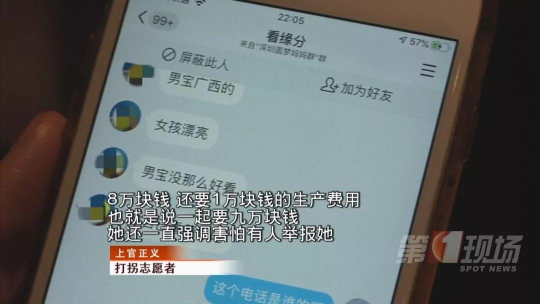 最近,一個(gè)黑色的地下販嬰鏈被揭開,一名來自深圳的網(wǎng)友在QQ群里發(fā)布消息:要出售一個(gè)女嬰,8萬塊,再加1萬元生產(chǎn)費(fèi)用,攏共9萬。9萬,這網(wǎng)友就把親生閨女賣了