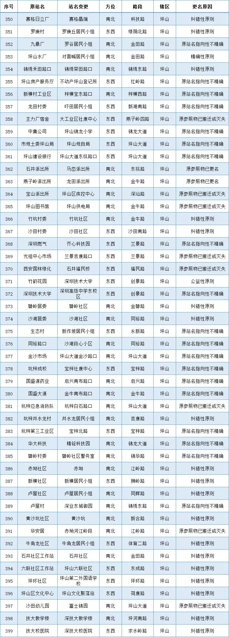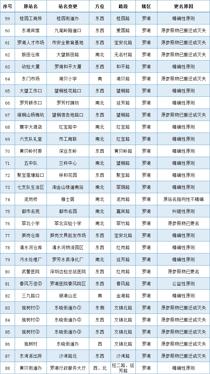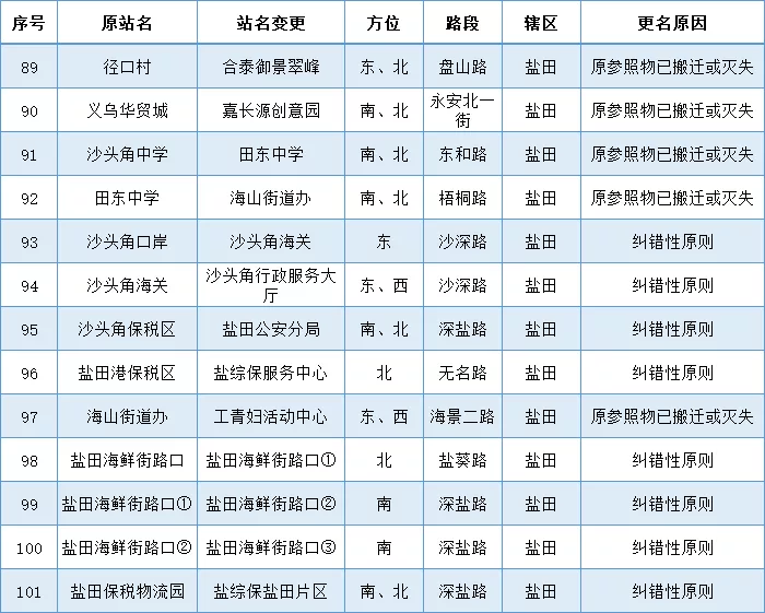 各區(qū)(新區(qū))公交站更名名單