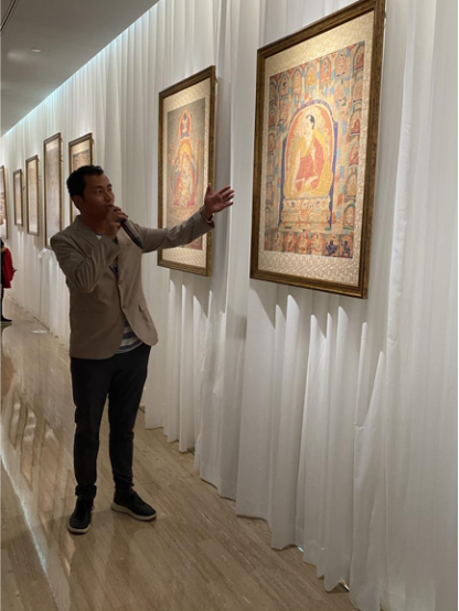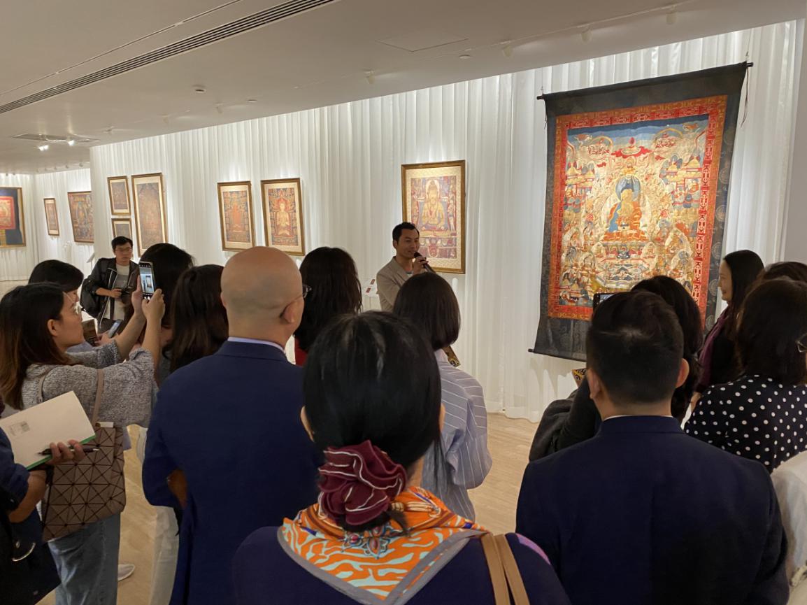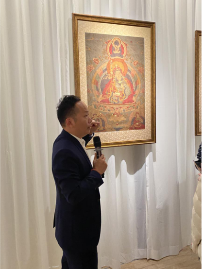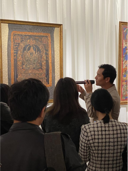 為了讓觀眾更好地了解本次展出唐卡的工藝美及其背后所蘊含的人文價值,桂心堂主人邀請了布達拉宮唐卡專家——次仁占堆老師、曾長期生活于蘇州的資深唐卡愛好者葉小龍,一同在1月4日的下午,給觀眾們帶來了一場深入淺出的導覽活動。