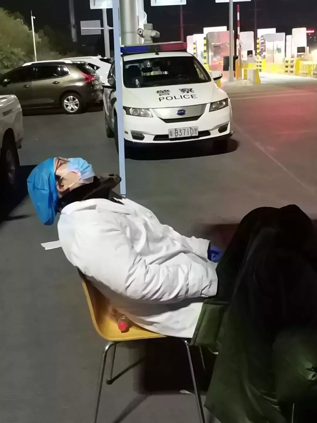 “我們采取輪班制,因高速路口車流量大,除了吃飯喝水,其余時(shí)間都在給返深人員檢測(cè)體溫?!闭掌臄z者陳偉標(biāo)說。他也是慢性病防治中心的醫(yī)生,同是這次檢疫一線的醫(yī)務(wù)人員,看到在寒夜中連續(xù)站立工作近7個(gè)小時(shí)的南月麗,疲憊地仰靠在椅子上休息,心中的觸動(dòng)讓他留下了這個(gè)珍貴瞬間,也成了防控疫情一線醫(yī)務(wù)人員的真實(shí)寫照。
