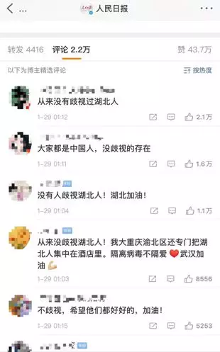 在武漢市委書記回應(yīng)歧視湖北人的微博下面,