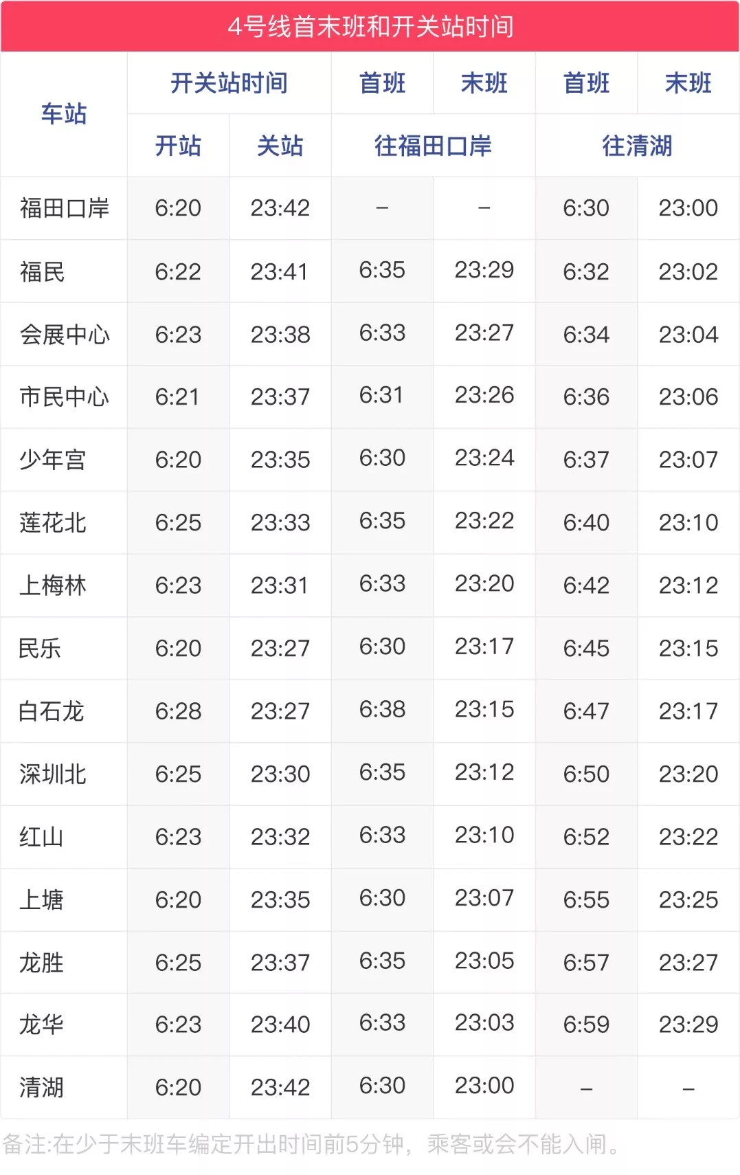 4號(hào)線運(yùn)營(yíng)時(shí)刻表