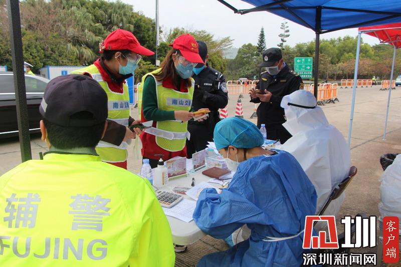 志愿者在和醫(yī)護人員確認被檢測人員的信息。