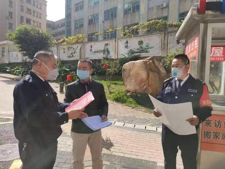 周尤(左二)到平湖轄區(qū)各小區(qū)開(kāi)展疫情防控工作