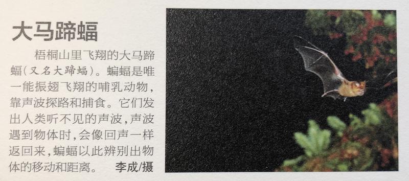 “我是在梧桐山附近仙湖植物園拍到的大馬蹄蝠。每到傍晚,仙湖植物園進(jìn)出園區(qū)的那條路上,都有數(shù)量比較多的大馬蹄蝠在那飛。當(dāng)時(shí)有幾棵樹(shù)在開(kāi)花,我拍了好幾張終于抓拍到一張清晰的?!?月4日,李成在回憶當(dāng)年拍攝經(jīng)歷時(shí)說(shuō),當(dāng)時(shí)蝙蝠群距離他最近的有2-3米,最遠(yuǎn)的有10多米。