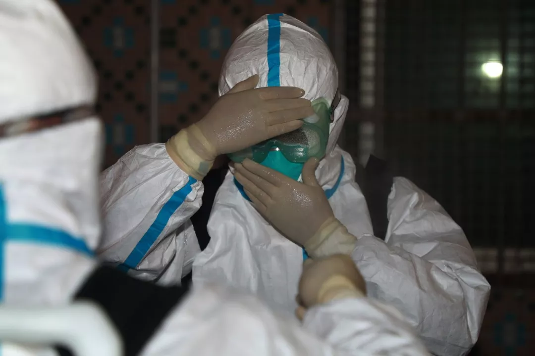 ▲疾控人員正在穿戴防護(hù)設(shè)備