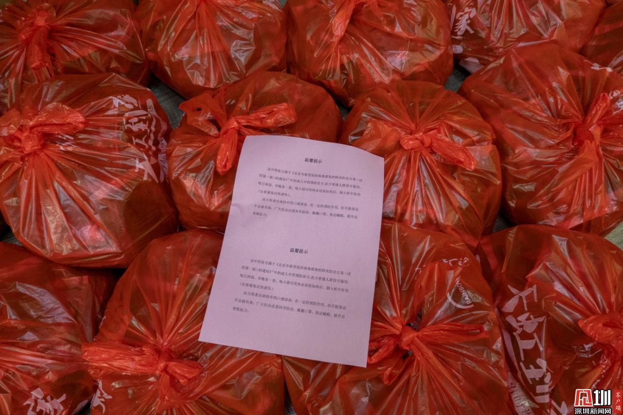 桃源街道機關(guān)各部門、各社區(qū)領(lǐng)取到中藥預(yù)防湯劑后,在保障一線工作人員服用的同時,紛紛將多余的中藥預(yù)防湯劑免費發(fā)放給身體虛弱、老年人、密切接觸者等易感人群、重點人群,總受益人群達(dá)1萬多人次。陰冷的寒天,捧著這些熱度剛剛好的的中藥,大家心里都是暖暖的?!胺浅8兄x桃源街道給我們送醫(yī)送藥。疫情突發(fā),喝了中藥湯劑,能夠增強身體的防御能力,也增加了我們戰(zhàn)勝疫情的信心?!惫枮I工業(yè)大學(xué)(深圳)的王老師說道。
