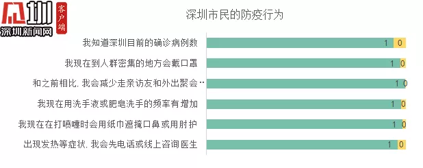 2020年2月9日-11日,深圳疾病預(yù)防控制中心聯(lián)合深圳大學(xué)傳播學(xué)院開展了《深圳市民新冠肺炎調(diào)查》。在三天時間內(nèi)共回收到8179份有效答卷。結(jié)果顯示,深圳市民對于新冠肺炎知識的了解程度達(dá)到了較高水平。近8成受訪市民對疫情發(fā)展持積極態(tài)度,超9成受訪市民能做好自我防護(hù),對于病原、疾病的典型癥狀、傳染源特征、洗手的有效預(yù)防性,以及高危人群特征也均超過了95%。
