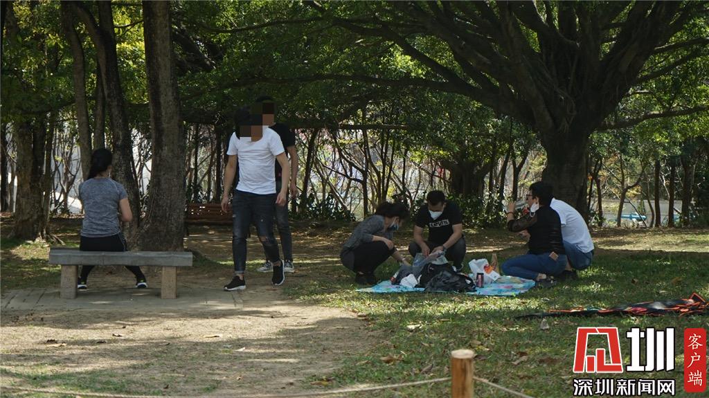 蓮花山公園里,記者也發(fā)現(xiàn)有一些年輕人在草地上休息,其中部分未配戴好口罩。