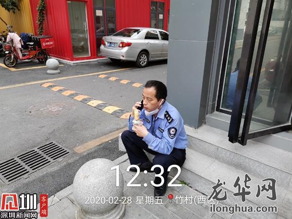 做完返深隔離人員沿途消殺工作,早已錯(cuò)過(guò)飯點(diǎn),記掛著接下來(lái)的種種工作,他轉(zhuǎn)身去便利店買(mǎi)了個(gè)面包,坐在店門(mén)口的臺(tái)階上,隨便對(duì)付一下。簡(jiǎn)單潦草的一頓午餐,卻是他難得的歇息片刻。