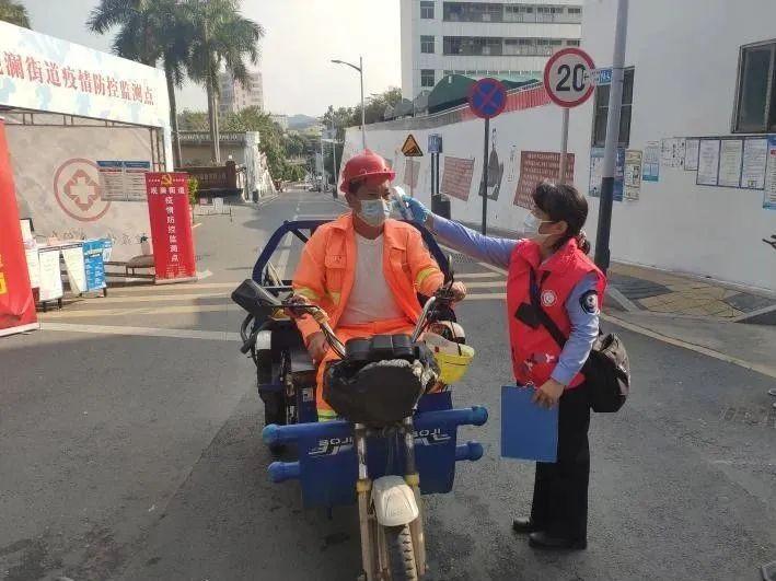龔韻是龍華區(qū)衛(wèi)生監(jiān)督所衛(wèi)生監(jiān)督員,身軀嬌小的她,為加快速度,不讓司機(jī)下車耽誤時(shí)間,只好踮起腳跟,努力抬高身子,為司機(jī)測量體溫……