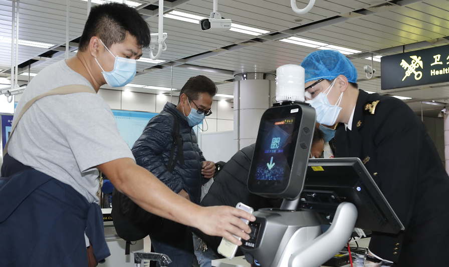 而隨著返深車輛和人員的增加,深圳從2月8日開始啟用線上車輛申報登記。緊接著,在G94高速深圳觀瀾收費(fèi)處,懸掛有申報二維碼的無人機(jī),成為防疫一線工作人員的得力助手。據(jù)了解,目前深圳市已對所有進(jìn)出車輛實(shí)施掃碼線上申報。而在深圳鶴洲檢查站,由深圳市公安局寶安分局聯(lián)合優(yōu)必選科技等合作單位共同打造的“黃田田”,每逢返深車輛經(jīng)過總會在路邊提醒入深人員掃碼登記。這是全國首款用在基層派出所滿足實(shí)戰(zhàn)需求的5G機(jī)器人。