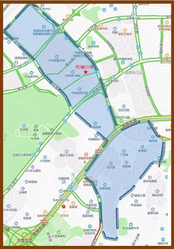 2.南灣學(xué)校龍崗大道以南部分。該招生范圍與南灣學(xué)校共享。