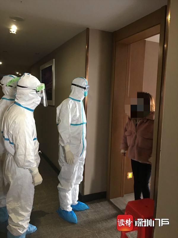 醫(yī)療隊(duì)員在留置觀察點(diǎn)對留觀人員進(jìn)行回訪。 深圳醫(yī)療隊(duì)供圖