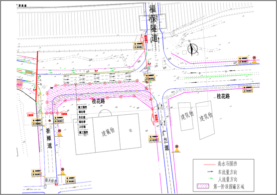 第一階段:對桂花路(福保隧道-香樟道段)南半幅(靠紅樹福苑側(cè))進(jìn)行封閉占用施工,北半幅臨時(shí)調(diào)整為三車道,一車道西行(進(jìn)保稅區(qū)方向),兩車道東行(出保稅區(qū)方向)。行人及非機(jī)動(dòng)車輛可通過現(xiàn)狀公園側(cè)人行道或紅樹福苑退線空間通行。自4月20日起,本階段預(yù)計(jì)持續(xù)施工60天。