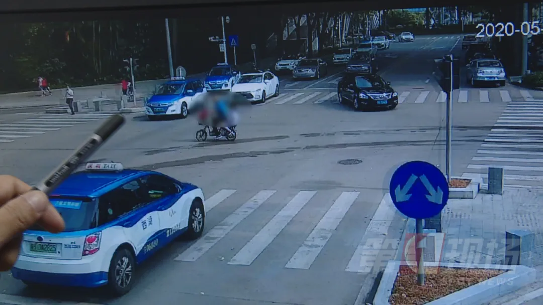 5月12日下午,在南山外國(guó)語(yǔ)學(xué)??圃沸W(xué)與南山外國(guó)語(yǔ)學(xué)校中間路段,一位老人騎電單車(chē),載著一名小學(xué)女生,沿著高新南環(huán)路由西往東方向行駛。