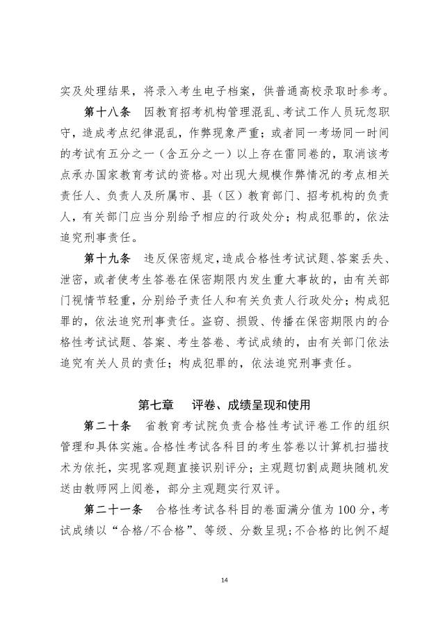 其中,合格性考試覆蓋所有學(xué)習科目,語文、數(shù)學(xué)、英語三門科目每年考1次,安排在1月開考;思想政治、歷史、地理、物理、化學(xué)、生物學(xué)六門科目每年考2次,安排在1月和6月開考。合格考成績呈現(xiàn)方式有三種:合格/不合格、等級、分數(shù)??荚嚦煽円豢純捎茫茸鳛閷W(xué)生畢業(yè)的依據(jù),也作為春季高考招生的依據(jù)之一。