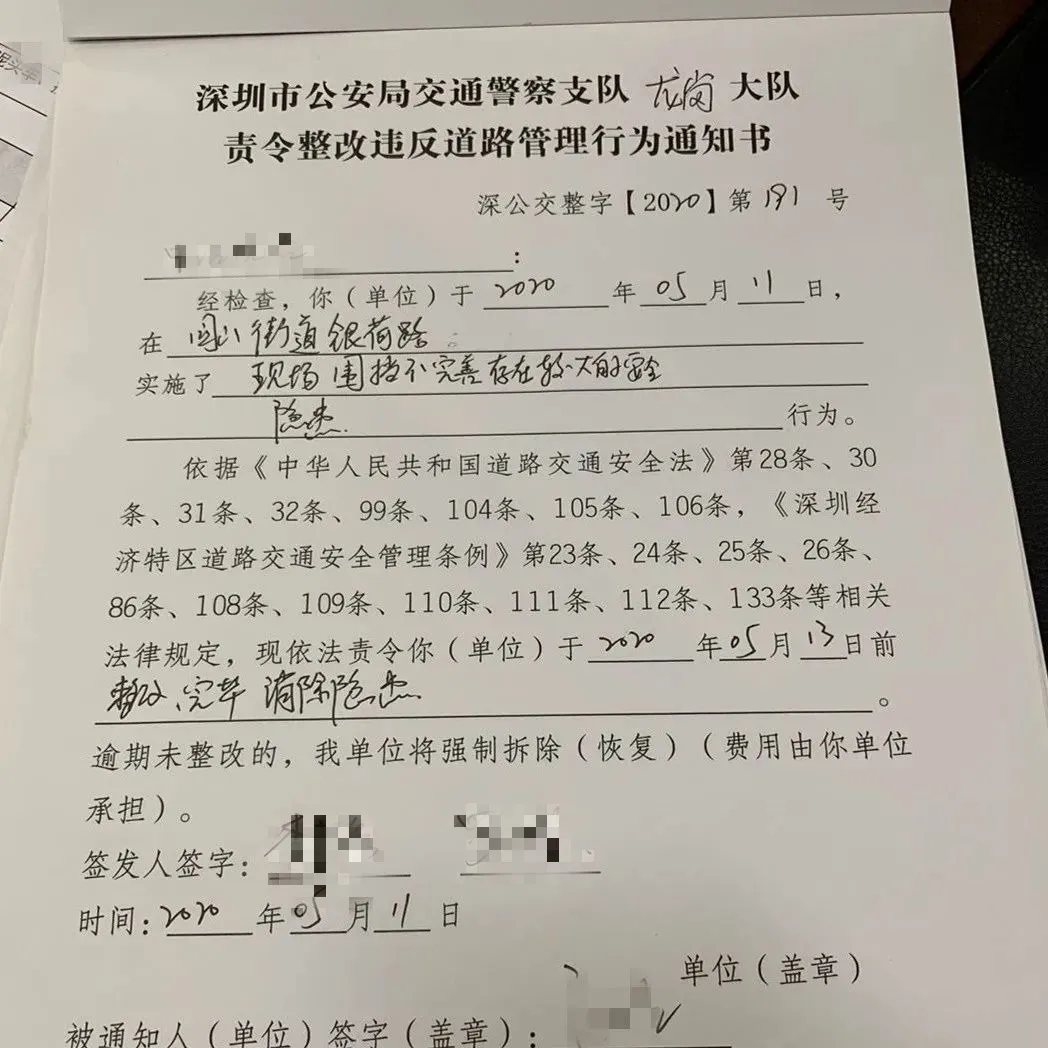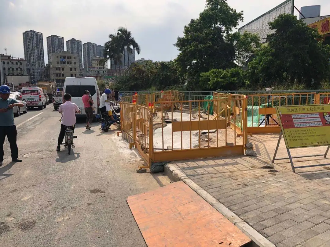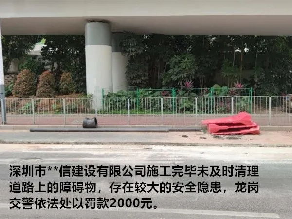 對該施工單位在橫坪連接線路段占道施工導致人行道不連貫、機非沖突,存在較大交通安全隱患的行為,龍崗交警依法處罰10000元并責令立即整改。