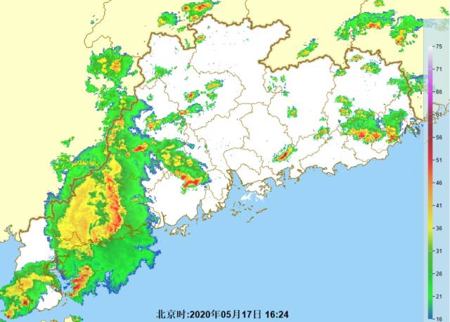 截至17日17時(shí),雷達(dá)回波圖顯示,降雨已經(jīng)影響到茂名、陽江、江門、肇慶等地,正繼續(xù)向東移動(dòng),將于晚間影響珠三角、粵東等地。