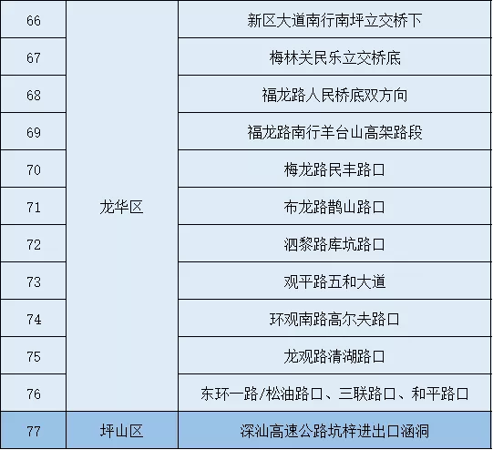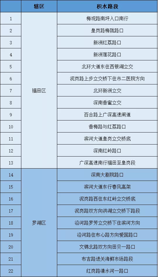 暴雨重點易積水路段(點位)