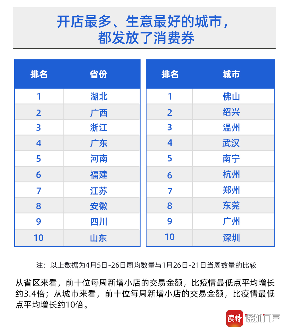 3月底以來全國各地掀起了一輪消費券高潮,截至目前已有170多個地市發(fā)放190多億元消費券,杭州、鄭州等城市的乘數(shù)效應都在10倍以上。支付寶數(shù)據(jù)顯示,受益商戶中9成為個體戶小店,成為拉動小店經(jīng)營的有力的數(shù)字化工具。也正是4月以來,個體戶小店的每周新增數(shù)量、每周新增小店的交易流水增長實現(xiàn)了強勢反彈。
