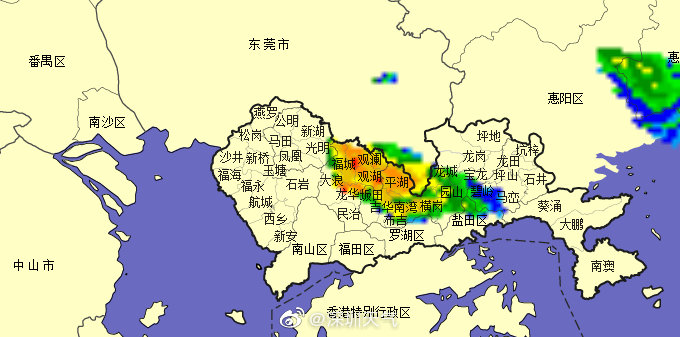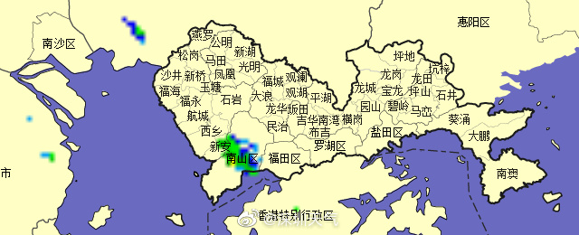 13時05分:目前我市寶安、南山、福田和羅湖局地有陣雨,中午外出吃飯的小伙伴,你們被雨追上了嗎?