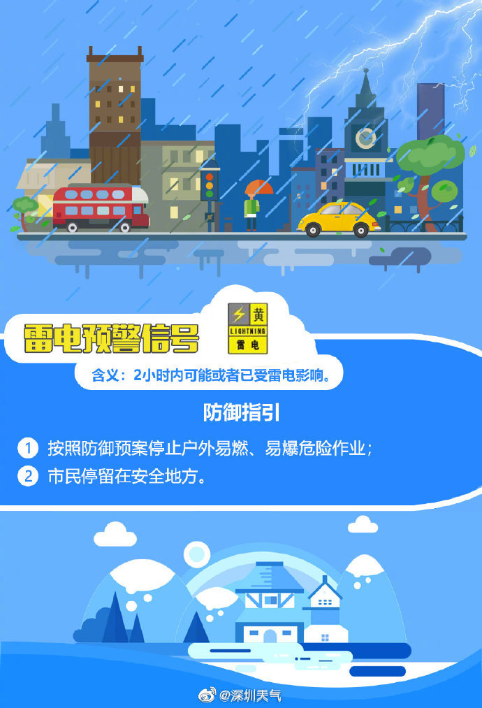 深圳市氣象臺(tái)于2020年06月05日11時(shí)15分在全市發(fā)布雷電預(yù)警,預(yù)計(jì)2小時(shí)內(nèi)全市將受雷電影響,市民停留在安全地方;按照防御預(yù)案停止戶外易燃易爆危險(xiǎn)作業(yè),并加強(qiáng)危化場(chǎng)所安全管理。