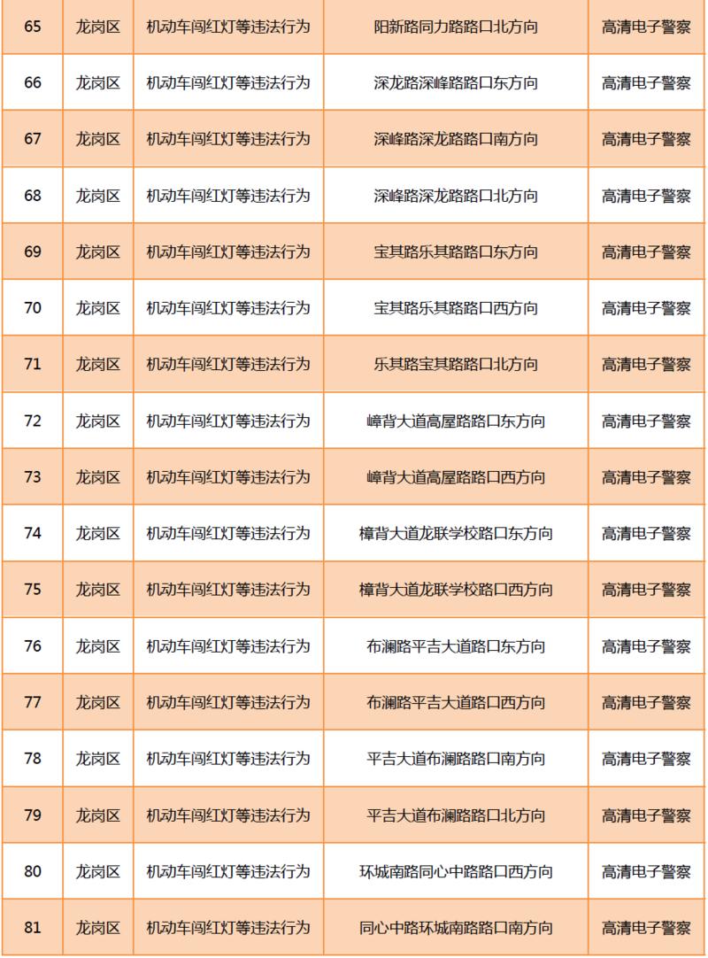 見圳客戶端?深圳新聞網2020年6月9日訊(晶報記者 鄧裴裴)6月9月,深圳市公安局交通警察局發(fā)布關于公布啟用190套交通技術監(jiān)控設備的公告,在福田區(qū)、羅湖區(qū)、寶安區(qū)、龍崗區(qū)、光明區(qū)啟用合計190套交通技術監(jiān)控設備,其中包括閉路電視、違停球、高清電子警察,類型為不按規(guī)定方向行駛或變更車道等違法行為和機動車闖紅燈等違法行為。