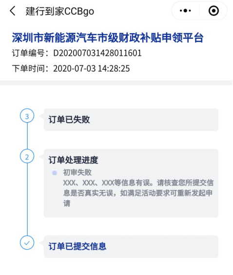 如客戶(hù)初審、終審失敗,重新進(jìn)入“深圳市新能源汽車(chē)市級(jí)財(cái)政補(bǔ)貼申領(lǐng)平臺(tái)”發(fā)起申請(qǐng)即可。