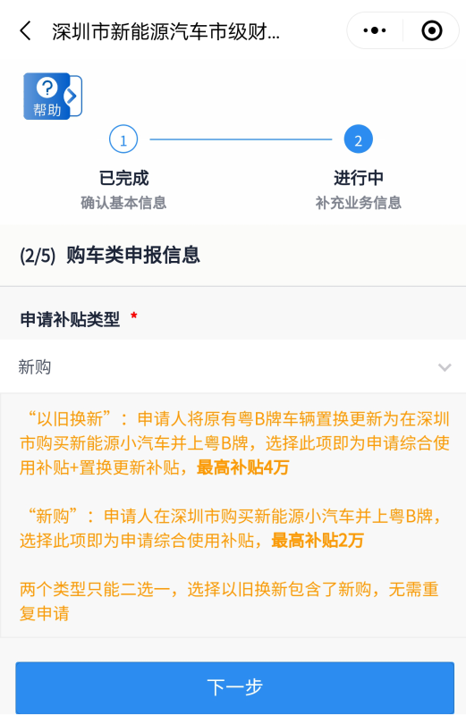 步驟5:購(gòu)車(chē)類(lèi)申報(bào)信息——選擇申請(qǐng)補(bǔ)貼類(lèi)型